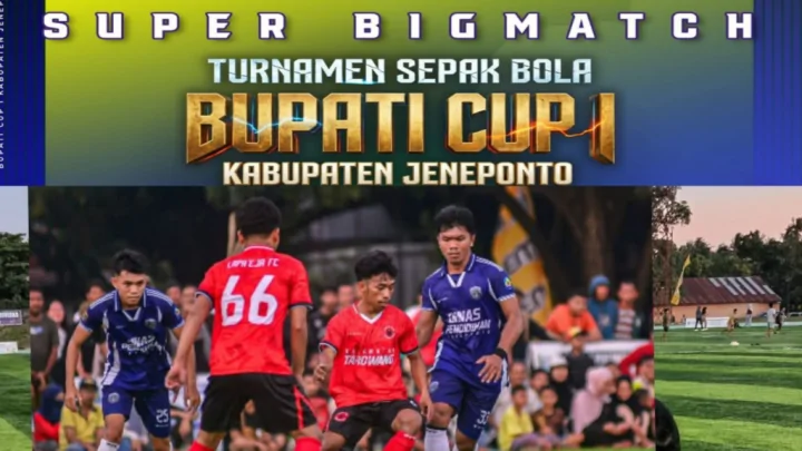 Terkini, Jeneponto – Kompetisi sepak bola Turnamen Bupati Cup I Kabupaten Jeneponto memasuki tahap krusial setelah delapan kesebelasan berhasil mengamankan tiket ke babak 8 besar. Para tim tersebut akan bersaing memperebutkan tempat di babak semifinal, dengan jadwal pertandingan yang telah ditetapkan berlangsung mulai 19 hingga 22 April 2026 mendatang.