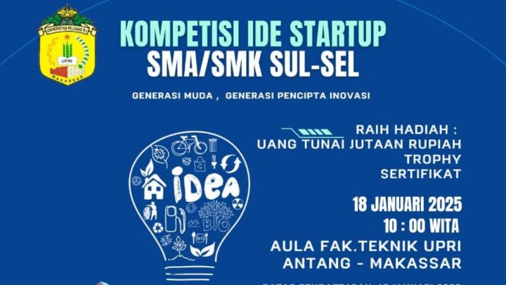 Terkini, Makassar – Fakultas Teknik Universitas Pejuang Republik Indonesia (UPRI) Makassar menggelar Lomba Start-Up 2025 Tingkat SMA/SMK Se-Sulawesi Selatan (Sulsel) dengan total hadiah uang tunai senilai jutaan rupiah, trophy dan sertifikat.
