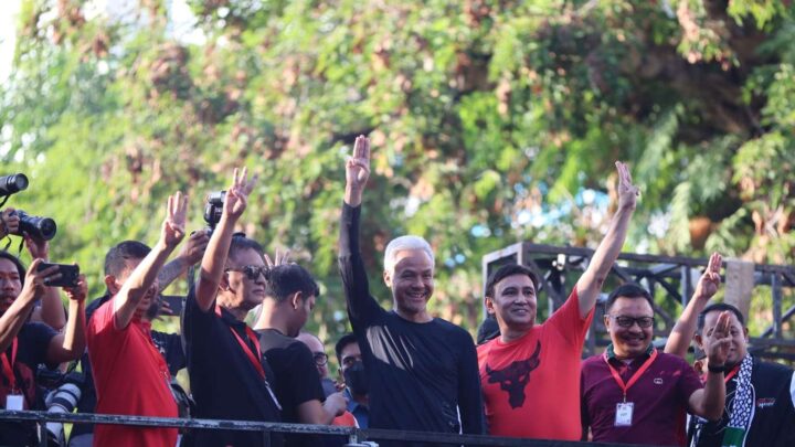 Terkini.id, Makassar – Calon presiden nomor urut 3, Ganjar Pranowo menghadiri jalan sehat perjuangan dengan tema “Baik untuk Indonesia”, di Jalan Jenderal Sudirman Kota Makassar, Sulawesi Selatan, Minggu 26 November 2023.