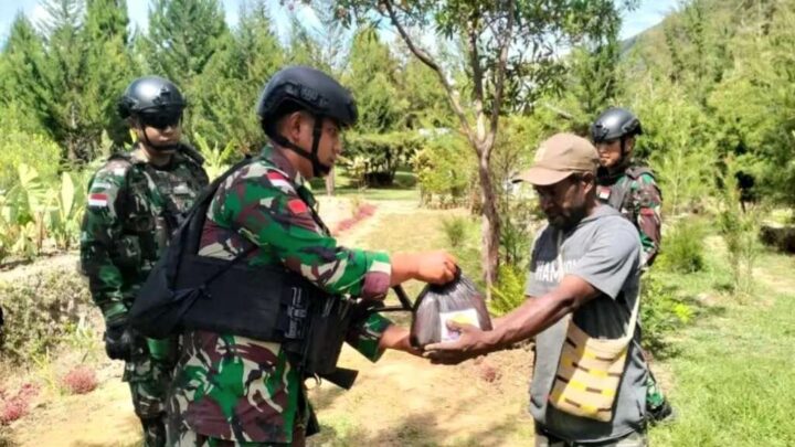 Terkini.id, Papua – Dalam rangka memperingati dan memeriahkan HUT Yonif 721/Mks yang ke-60 yang jatuh pada tanggal 12 Desember 2023, Satgas Yonif 721/Mks Pos Pirime bagikan 100 paket sembako kepada warga Kampung Wenam, Distrik Pirime, Kabupaten Lanny Jaya, Provinsi Papua Pegunungan, Sabtu, 9 Desember 2023.