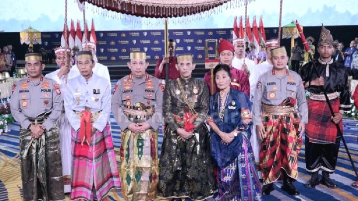 Terkini, Sulsel – Kapolri Jenderal Listyo Sigit Prabowo dianugerahi gelar Raja atau Karaeng dan Pusaka Supakala dari Dewan Adat dan Kerajaan di Sulawesi Selatan (Sulsel). Penghargaan diberikan berbarengan dengan kegiatan pembukaan Rakernis Baharkam Polri, di Ballroom Hotel Four Points by Sheraton Makassar, Sulsel, Rabu, 5 Juni 2024.