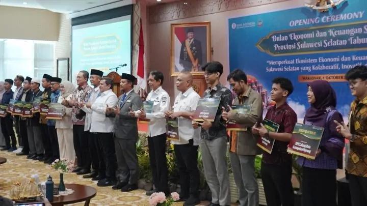 Kepala Perwakilan Bank Indonesia Provinsi Sulawesi Selatan (BI Sulsel), Rizki E. Wimanda, bersama Kepala Badan Penyelenggara Jaminan Produk Halal (BPJPH), Ahmad Haikal Hassan, dan Gubernur Sulawesi Selatan, Andi Sudirman Sulaiman resmi membuka rangkaian kegiatan Bulan Ekonomi dan Keuangan Syariah (BEKS) 2025, pada 1 Oktober 2025.