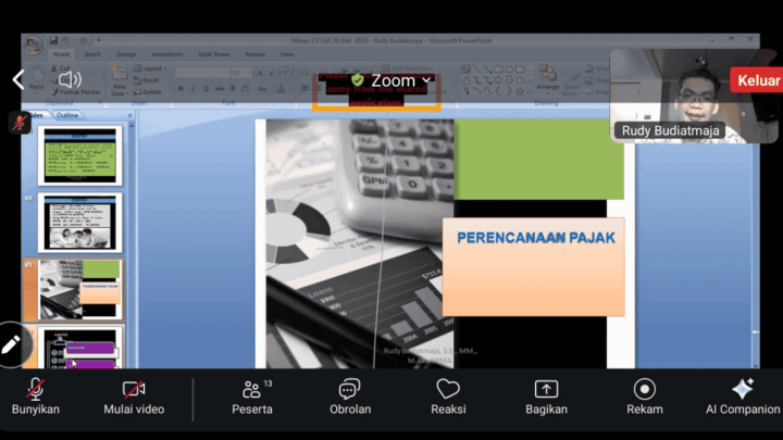 Pelatihan ini menjadi pengalaman luar biasa yang tidak hanya memperdalam pemahaman Fadya tentang dunia perpajakan, tetapi juga memperluas wawasannya dalam aspek profesionalisme terutama karena disampaikan langsung oleh pemateri yang berpengalaman yaitu Dr. (c). Rudy Budiatmaja, S.E., M.Ak, CT .ALC.