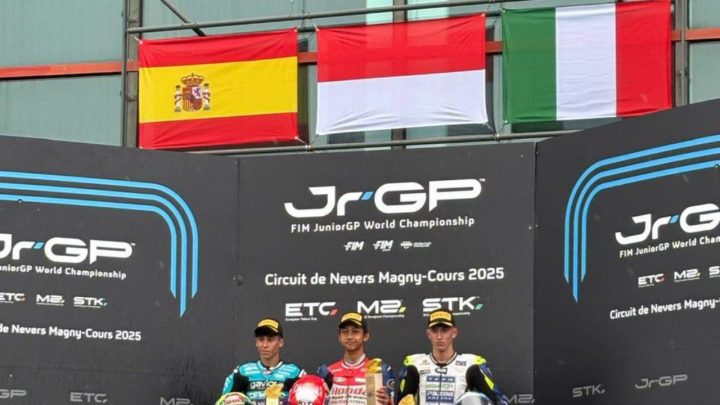 Terkini, Jakarta – Pebalap binaan PT Astra Honda Motor (AHM) kembali cetak sejarah untuk Indonesia. Setelah sebelumnya Veda Ega Pratama menang di RedBull Rookies Cup (RBRC) Italia, saat ini giliran M. Kiandra Ramadhipa yang tampil memukau dalam gelaran FIM JuniorGP World Championship yang berlangsung di sirkuit Magny-Cours, Prancis pada 5-6 Juli 2025.