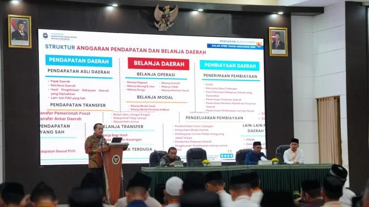 Ia juga menguraikan empat langkah strategis untuk mendorong pertumbuhan ekonomi daerah, yakni percepatan realisasi APBD melalui optimalisasi belanja, inovasi PAD yang tidak memberatkan masyarakat, pemanfaatan Program Strategis Nasional sebagai peluang pertumbuhan, serta mendorong peran swasta melalui kemudahan perizinan.