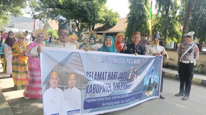 Terkini, Jeneponto – Dalam rangka memeriahkan Hari Jadi ke-162 Kabupaten Jeneponto, Rumah Sakit Umum Daerah (RSUD) Lanto Daeng Pasewang (Latopas) turut ambil bagian dalam Karnaval Budaya dan Seni yang digelar meriah pada Senin, 28 April 2025.