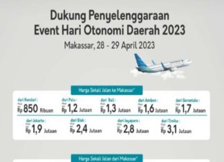 Dalam rangka menyukseskan hari peringatan Otonomi Daerah (OTDA) Garuda Indonesia bekerjasama dengan Pemkot Makassar memberikan promo spesial tiket pesawat bagi peserta OTDA yang hendak ke Makassar..