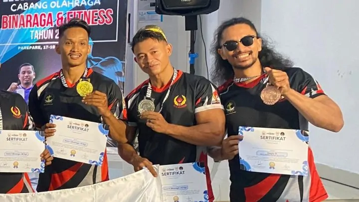 Terkini, Makassar – Sebanyak tiga atlet binaraga dari Story Gym Makassar yang ikut dalam Kontingen Persatuan Binaraga Fitnes Indonesia (PBFI) Kota Makassar sukses meraih prestasi gemilang di ajang Pra Kualifikasi Pekan Olahraga Provinsi (Porprov) Sulawesi Selatan ke-XVIII yang diikuti oleh 11 Kabupaten/Kota Se-Sulsel dan digelar di Kota Parepare pada Jumat hingga Minggu, 17-19 Oktober 2025.